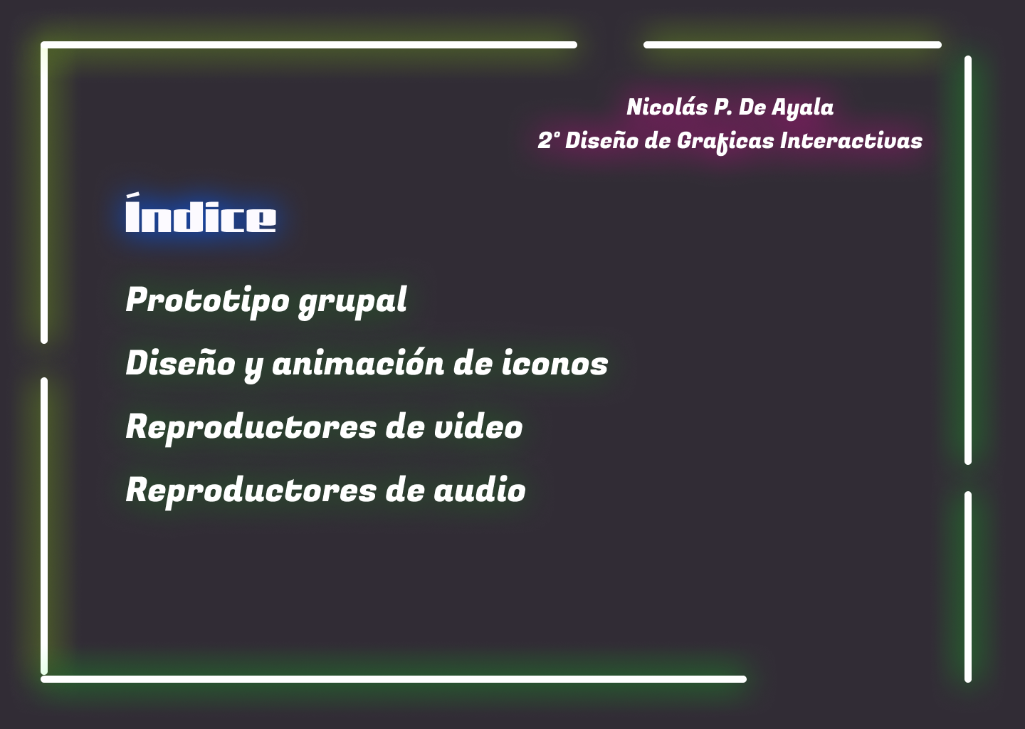 En este proyecto organicé mis diferentes trabajos realizados en medios informáticos en una presentación interactiva.